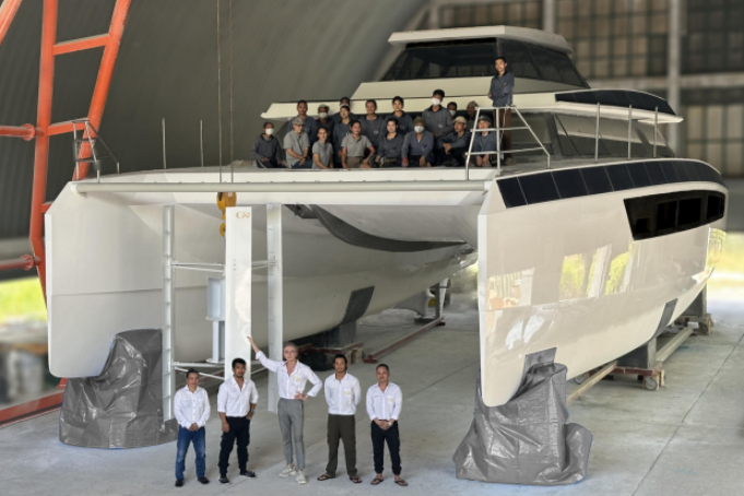 Während viele Projekte noch in der Konzeptphase sind, ist die GR63 ein reales Boot, das derzeit in Hua Hin, Thailand, fertiggestellt wird. Der Katamaran wurde vom Franzosen Gilles Reigner mit Alexandre Fortabat als Architekt erdacht und gebaut und veranschaulicht eine konkrete Wende hin zu völliger Energieautonomie und nachhaltigem Luxus.