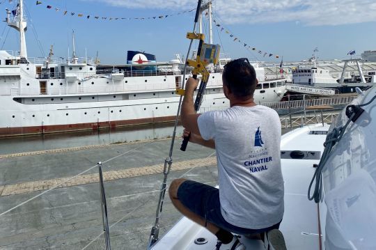Die Baustelle wird auf Bestellung der Händler tätig, je nach den von den zukünftigen Besitzern gewählten Optionen. Dies umfasst den Einbau der Ausrüstung, technische Anpassungen und die Anpassung an die Vorschriften vor der Auslieferung. Diese Tätigkeit setzt eine ausgezeichnete Kenntnis der Systeme an Bord dieser Kreuzfahrtkatamarane sowie eine strenge Koordination mit den verschiedenen Beteiligten voraus.