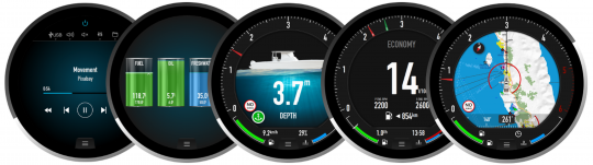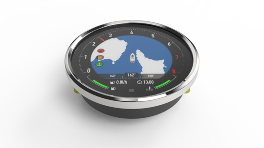 LXNAV wendet sein im Bereich der Flugzeuginstrumentierung erworbenes Know-how auf die Schifffahrt an, mit einer klaren Schnittstelle und einer Ergonomie, die derjenigen von Cockpit-Bildschirmen ähnelt. Die Wahl eines 102 mm (4 Zoll) großen, vollständig berührungsempfindlichen Bildschirms im Rundformat entspricht einer doppelten Logik: Platzersparnis auf den Konsolen und ästhetische Integration.