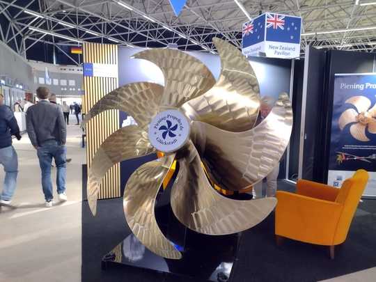 Besondere Erwähnung verdienen einige spektakuläre Stücke, wie der XXL-Propeller von Piening Propeller, der die deutsche Ingenieurskunst im Dienste großer Einheiten auf den Punkt bringt.